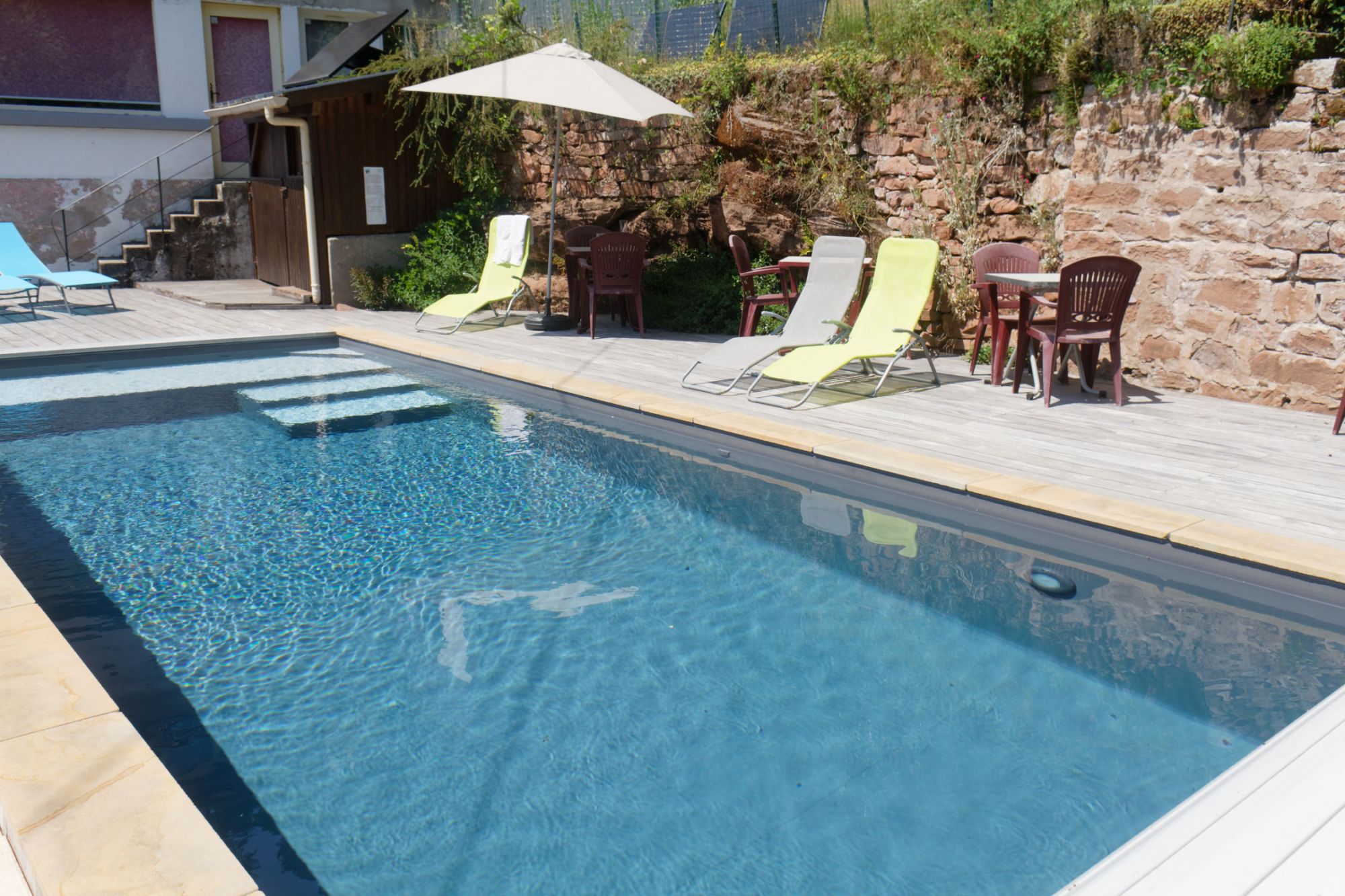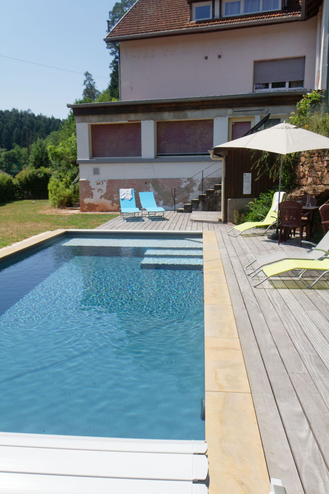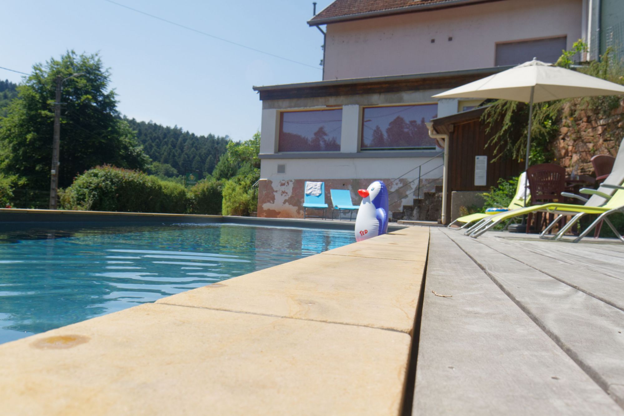 Room for 2 people (double bed), spacious and very sunny, it is located on the 1st floor, at the front of the building. It offers a view of the Massif du Donon and the Sarre Rouge... You'll love the peace and quiet...